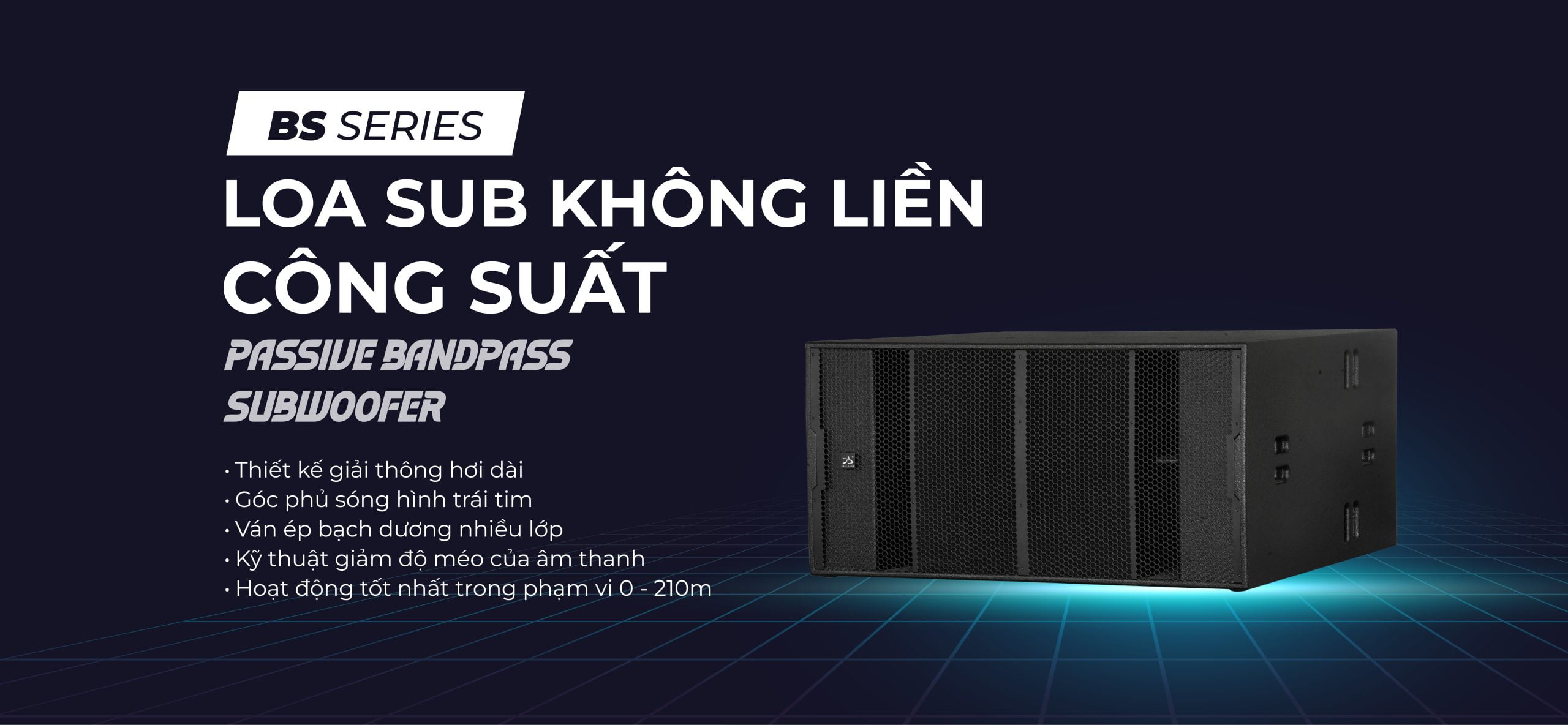 Dòng sản phẩm Loa Sub Không Liền Công Suất BS Series của Dare Professional Audio được thiết kế thùng thông dải dài cùng công nghệ chống méo tiếng giúp tăng cường âm trầm của loa. Công nghệ này còn hỗ trợ kiểm soát âm thanh với góc phủ sóng hình trái tim, giúp giảm thiếu hiện tượng âm thanh bị tán xạ và nhiễu loạn từ đó mang đến trải nghiệm nghe nhạc chính xác và sống động hơn.