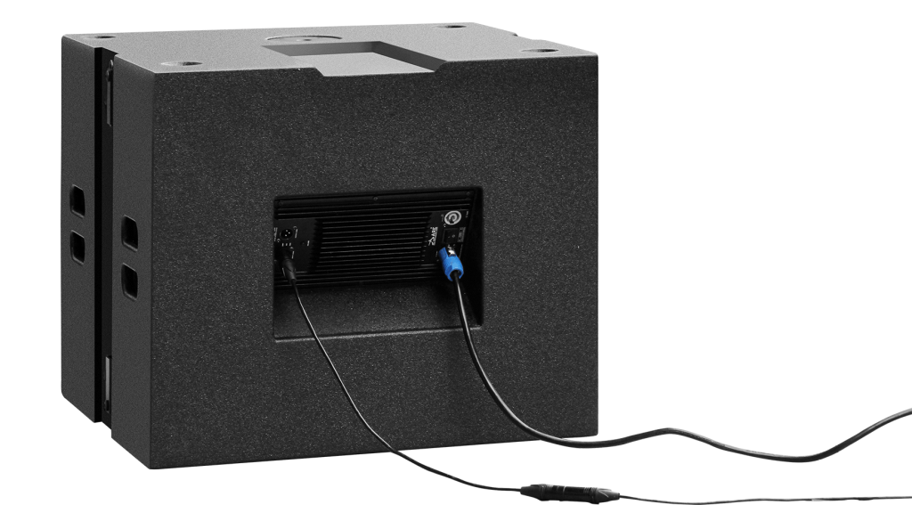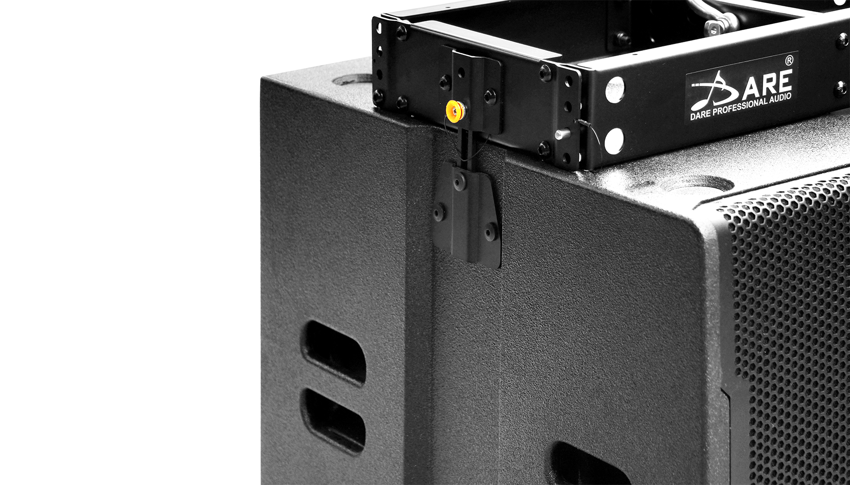 Phần chân cao su liên kết giúp các thùng loa có thể xếp chồng chắc chắn, đồng thời cho phép triển khai cardioid subwoofer array khi cần kiểm soát hướng phát âm trầm, đặc biệt hữu ích trong sân khấu lớn hoặc khu vực yêu cầu hạn chế dội bass về phía sau.